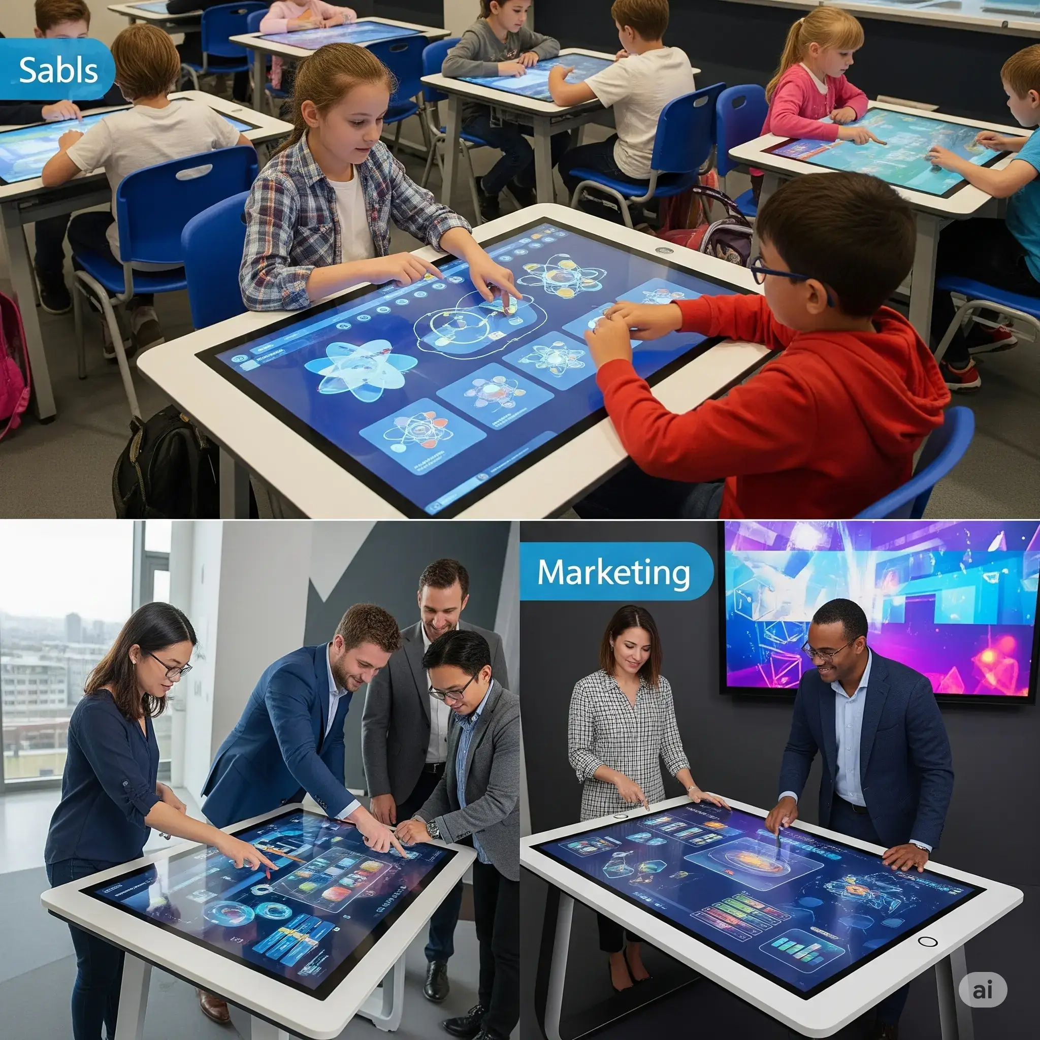 Las mesas multitouch son herramientas valiosas en educación y marketing por su interfaz intuitiva, capacidad multiusuario y fomento de la participación activa.